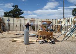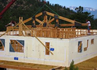 | Each ICF is locked to the next with a double tongue and groove design, and the walls securely braced in preparation for pouring the concrete. Once the 1st story walls are poured, the 2nd story floor is built and the 2nd story walls are placed and poured. |