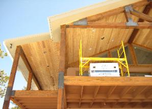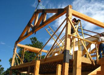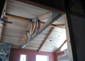 | Our custom, big timber truss roof system are a beautiful addition to a beautiful home. |